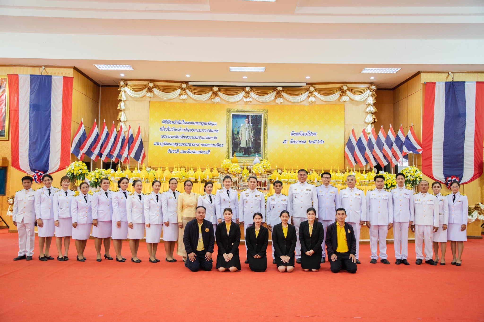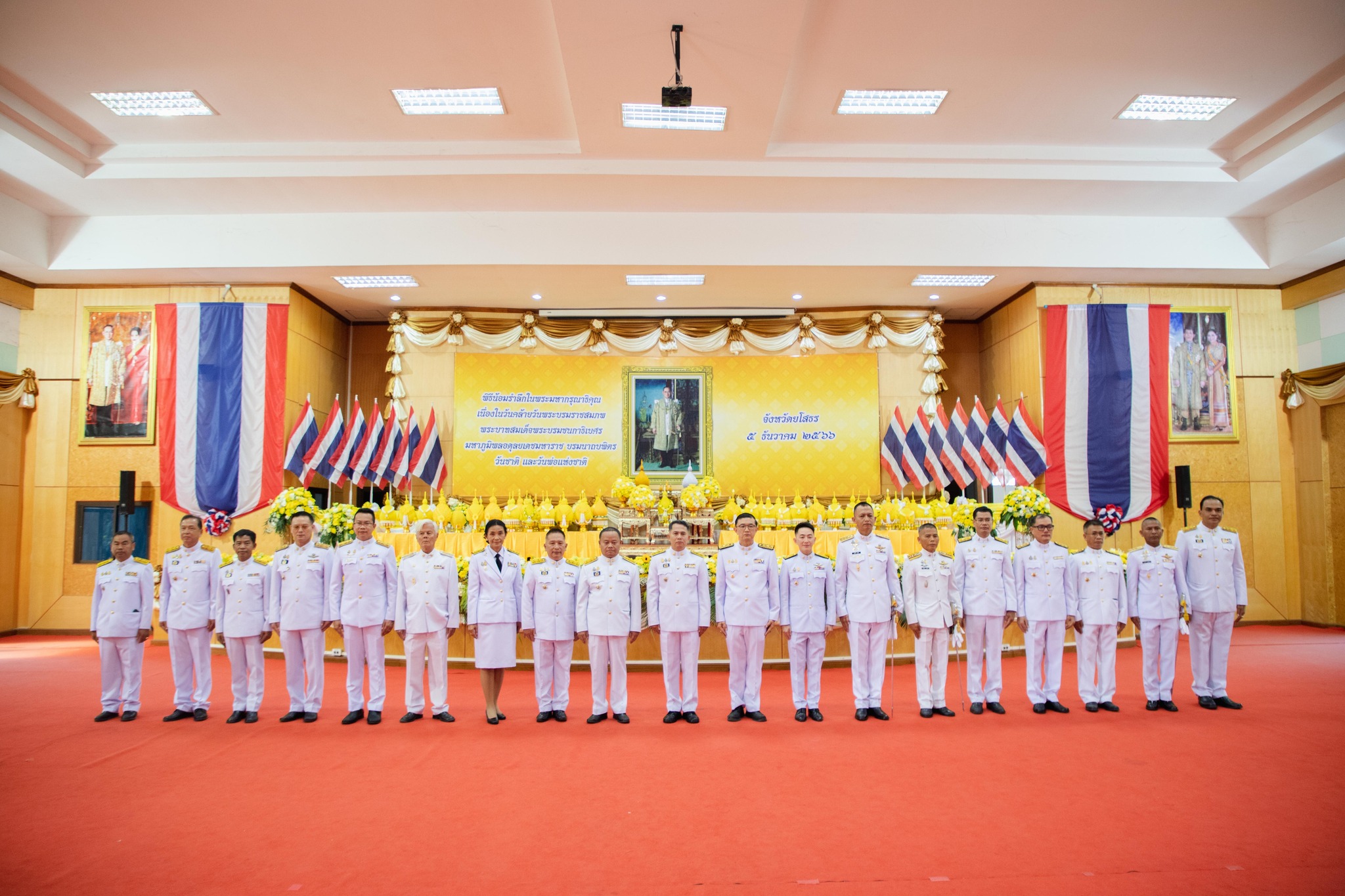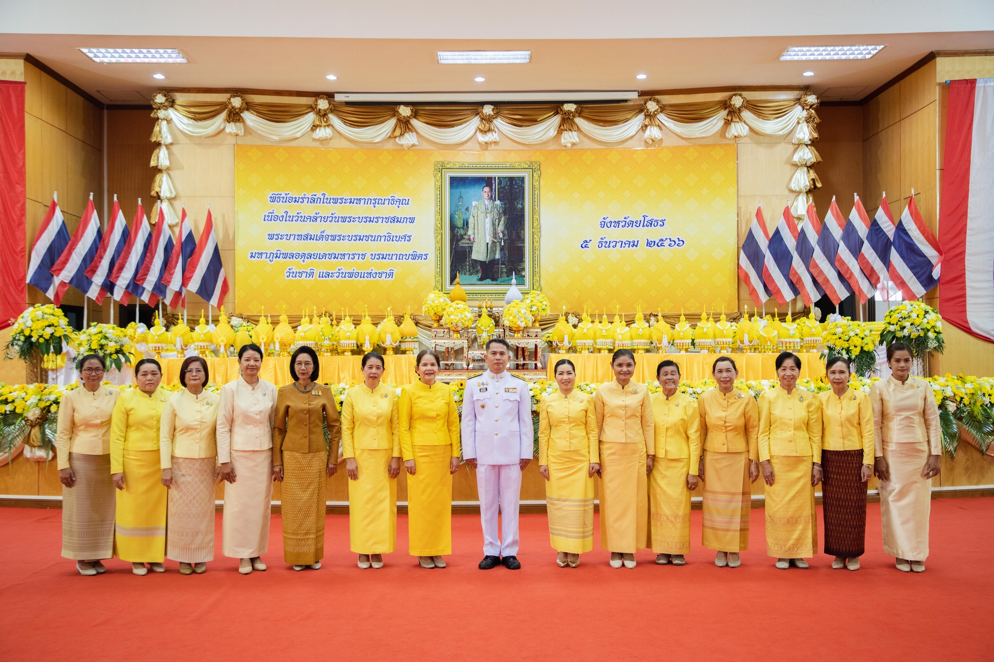 วันที่ 5 ธันวาคม 2566 เวลา 09.19 น. นายสุวัฒน์ เข็มเพชร รองผู้ว่าราชการจังหวัด รักษาราชการแทนผู้ว่าราชการจังหวัดยโสธร เป็นประธานประกอบพิธีวางพานพุ่มถวายราชสักการะเบื้องหน้าพระบรมฉายาลักษณ์ พระบาทสมเด็จพระบรมชนกาธิเบศร มหาภูมิพลอดุลยเดชมหาราช บรมนาถบพิตร โดยมี นายไกร เอี่ยมจุฬา รองผู้ว่าราชการจังหวัดยโสธร หัวหน้าส่วนข้าราชการ เหล่ากาชาดจังหวัดยโสธร ชมรมแม่บ้านมหาดไทยจังหวัดยโสธร และประชาชน ร่วมพิธี ณ หอประชุมวิถีอีสาน ศาลากลางจังหวัดยโสธร