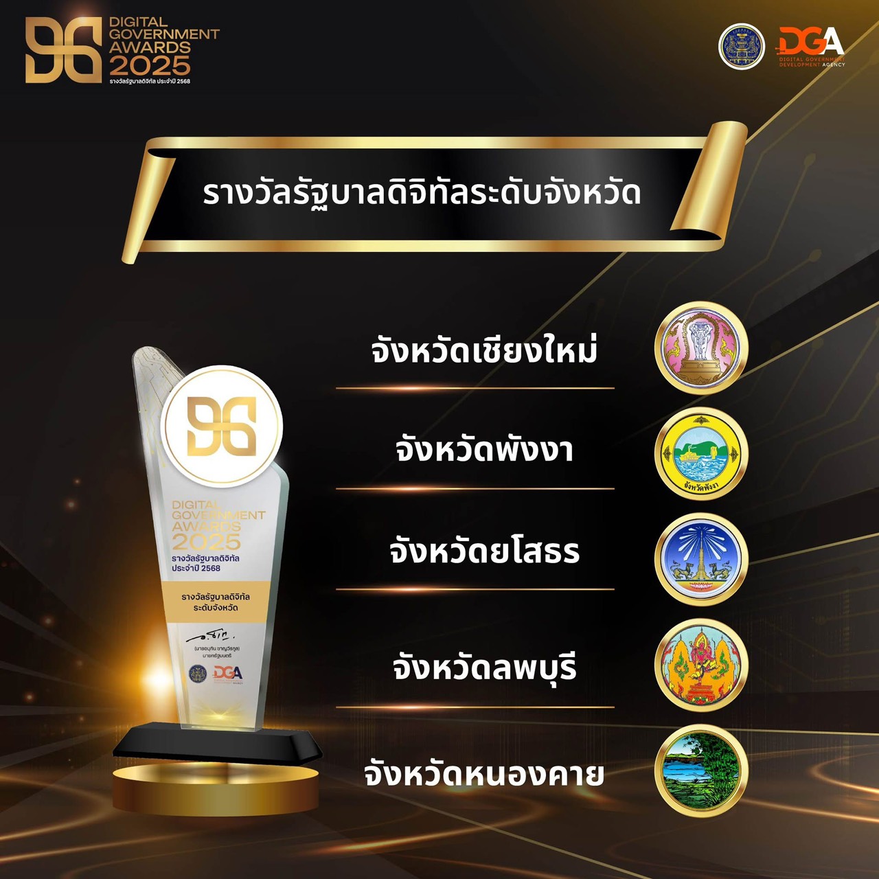 วันที่ 17 พฤศจิกายน 2568 นายชาญชัย ศรศรีวิชัย ผู้ว่าราชการจังหวัดยโสธร ได้เข้ารับมอบรางวัลรัฐบาลดิจิทัล ระดับจังหวัด ประจำปี 2568 “DG Awards 2025” ซึ่งเป็น 1 ใน 5 จังหวัดของประเทศไทยที่ได้รับรางวัลอันทรงเกียรตินี้ สะท้อนให้เห็นถึงความมุ่งมั่นในการพลิกโฉมการบริหารงานและการบริการประชาชนสู่ยุคดิจิทัลอย่างเต็มรูปแบบ จากนายภราดร ปริศนานันทกุล รัฐมนตรีประจำสำนักนายกรัฐมนตรี ประธานในพิธี ณ ตึกสันติไมตรี ทำเนียบรัฐบาล