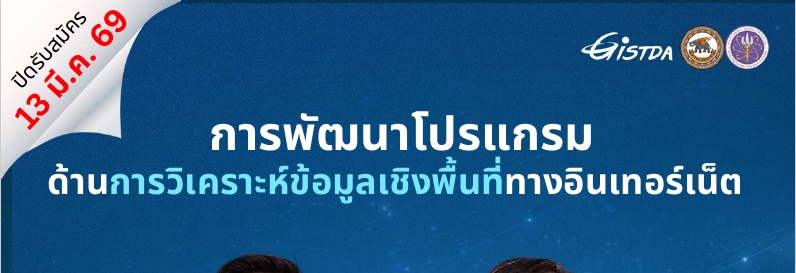 ขอเชิญเข้ารับการฝึกอบรม หลักสูตร การพัฒนาโปรแกรมด้านการวิเคราะห์ข้อมูลเชิงพื้นที่ทางอินเทอร์เน็ต (Internet GIS) ประจำปี 2569