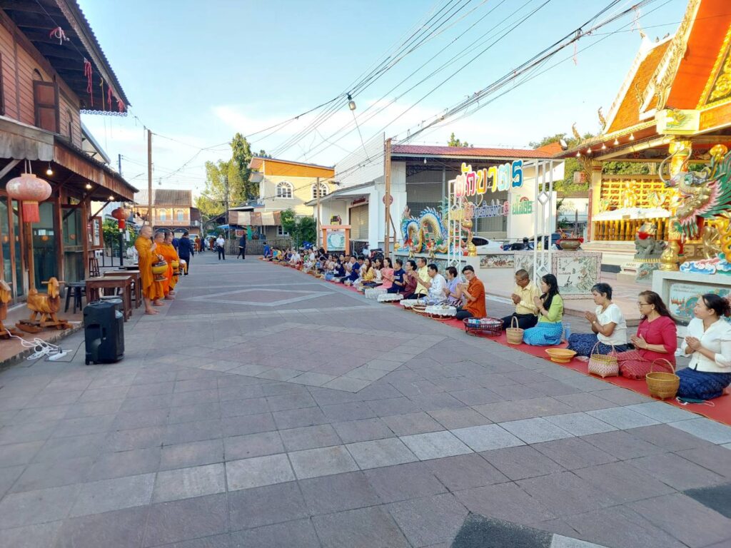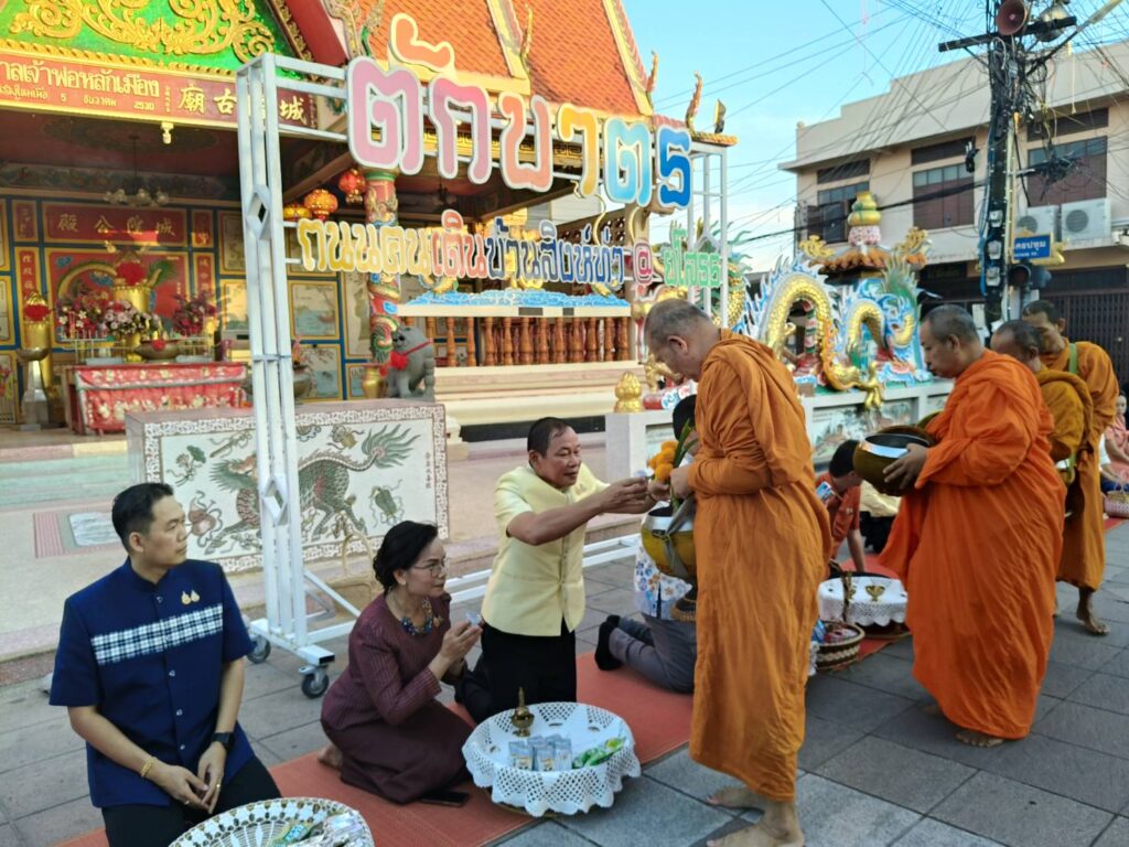 วันที่ 25 กันยายน 2568 ณ บริเวณถนนคนเดินยโสธร ย่านเมืองเก่าบ้านสิงห์ท่า ตำบลในเมือง อำเภอเมืองยโสธร จังหวัดยโสธร นายขรรค์ไชย ทันธิมา รองผู้ว่าราชการจังหวัดยโสธร พร้อมด้วย นายสันชัย พัฒนะวิชัย รองผู้ว่าราชการจังหวัดยโสธร นายสมชัย บูรณะ ปลัดจังหวัดยโสธร นำคณะหัวหน้าส่วนราชการ และพุทธศาสนิกชน ที่พร้อมใจกันแต่งกายด้วยชุดผ้าไทยและผ้าพื้นเมืองที่สวยงาม มาร่วมทำบุญตักบาตรข้าวสารอาหารแห้งแด่พระภิกษุสงฆ์ ภายใต้กิจกรรมทำบุญ “ตักบาตรย้อนยุค วิถีถิ่น วิถีไทย” ซึ่งจัดขึ้นเป็นประจำทุกเช้าวันพฤหัสบดี
