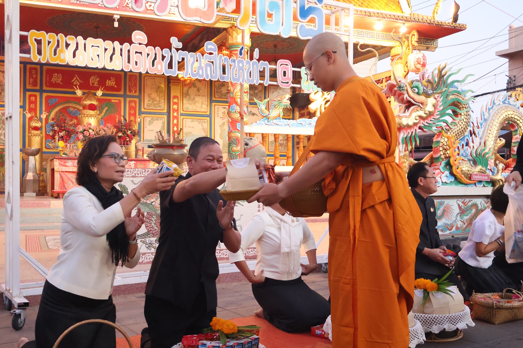 วันที่ 18 ธันวาคม 2568 ที่บริเวณถนนคนเดินยโสธร ย่านเมืองเก่าบ้านสิงห์ท่า ตำบลในเมือง อำเภอเมืองยโสธร จังหวัดยโสธร นายชาญชัย ศรศรีวิชัย ผู้ว่าราชการจังหวัดยโสธร พร้อมด้วย นางนันทพร ศรศรีวิชัย นายกเหล่ากาชาดและรองประธานแม่บ้านมหาดไทยจังหวัดยโสธร, นายสมชัย บูรณะ ปลัดจังหวัดยโสธร, นางปราณี บูรณะ รองนายกเหล่ากาชาดและรองประธานแม่บ้านมหาดไทยจังหวัดยโสธร ได้นำคณะหัวหน้าส่วนราชการ เจ้าหน้าที่ ตลอดจนพุทธศาสนิกชนร่วมกันทำบุญตักบาตรข้าวสารอาหารแห้ง แด่พระภิกษุสงฆ์ ภายใต้กิจกรรม ทำบุญตักบาตรย้อนยุค วิถีถิ่น วิถีไทย ที่จังหวัดยโสธรจัดขึ้นเป็นประจำทุกเช้าวันพฤหัสบดี เพื่อน้อมสำนึกในพระมหากรุณาธิคุณ และถวายเป็นพระราชกุศล แด่สมเด็จพระนางเจ้าสิริกิติ์ พระบรมราชินีนาถ พระบรมราชชนนีพันปีหลวง ผู้ทรงเป็น “แม่ของแผ่นดิน” ที่ตลอดระยะเวลาอันยาวนาน พระองค์ทรงปฏิบัติพระราชกรณียกิจเคียงข้างพระบาทสมเด็จพระบรมชนกาธิเบศร มหาภูมิพลอดุลยเดชมหาราช บรมนาถบพิตร เพื่อบำบัดทุกข์บำรุงสุขแก่ราษฎรทุกหมู่เหล่า โดยเฉพาะอย่างยิ่ง พระราชกรณียกิจด้านศิลปหัตถกรรมไทย ที่ทรงฟื้นฟูและส่งเสริมงานศิลปาชีพให้เป็นที่ประจักษ์แก่สายตาชาวโลก สร้างอาชีพ สร้างรายได้ และอนุรักษ์มรดกทางวัฒนธรรมอันล้ำค่าของชาติไว้ได้อย่างยั่งยืน ด้วยพระปรีชาสามารถและพระวิสัยทัศน์ที่กว้างไกล พระองค์จึงทรงเป็นแรงบันดาลใจและเป็นศูนย์รวมใจของคนไทยทั้งชาติ