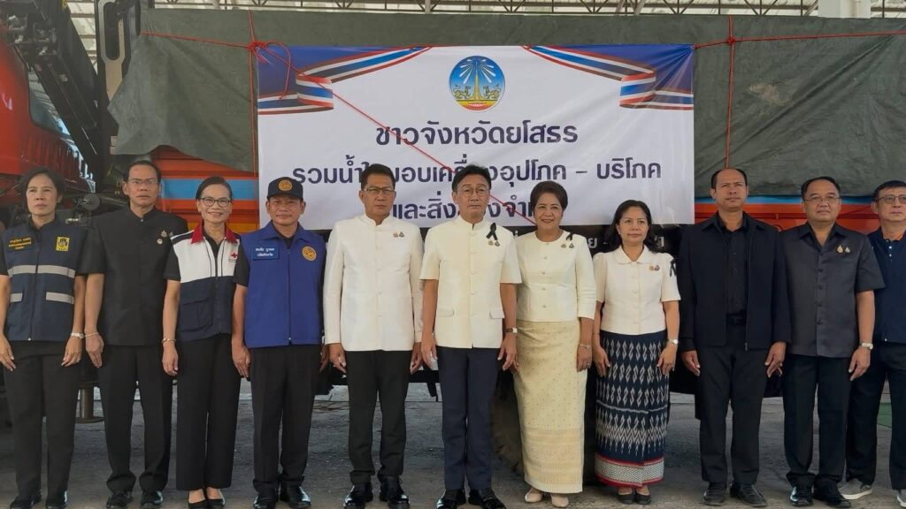 16 ธันวาคม 2568 จังหวัดยโสธรได้เปิดปฏิบัติการลำเลียงความช่วยเหลือที่ได้เปิดรับบริจาคเครื่องอุปโภค บริโภค และสิ่งของเครื่องใช้ที่จำเป็น กระจายกำลังลงพื้นที่เพื่อบรรเทาทุกข์ในทันที โดยนายขรรค์ไชย ทันธิมา รองผู้ว่าราชการจังหวัดยโสธร รับภารกิจสำคัญจาก นายชาญชัย ศรศรีวิชัย ผู้ว่าราชการจังหวัดยโสธร นำทีมกำลังพล อส. และรถบรรทุกหนัก 2 คันใหญ่ มุ่งหน้าสู่จังหวัดอุบลราชธานี เพื่อส่งมอบความรักความห่วงใยในรูปแบบของอุปโภคบริโภคกว่า 18 รายการหลักครอบคลุมทั้งเครื่องอุปโภคบริโภค นมกล่อง เครื่องดื่มชูกำลัง และที่ขาดไม่ได้คือ แจ่วบองของดีรสแซ่บจังหวัดยโสธร ที่ตั้งใจคัดสรรเพื่อนำไปเติมแรงกาย ปลุกแรงใจให้พี่น้องชาวอุบลฯ ได้มีมื้ออาหารที่อบอุ่นและมีรสชาติบ้านเราท่ามกลางวิกฤต