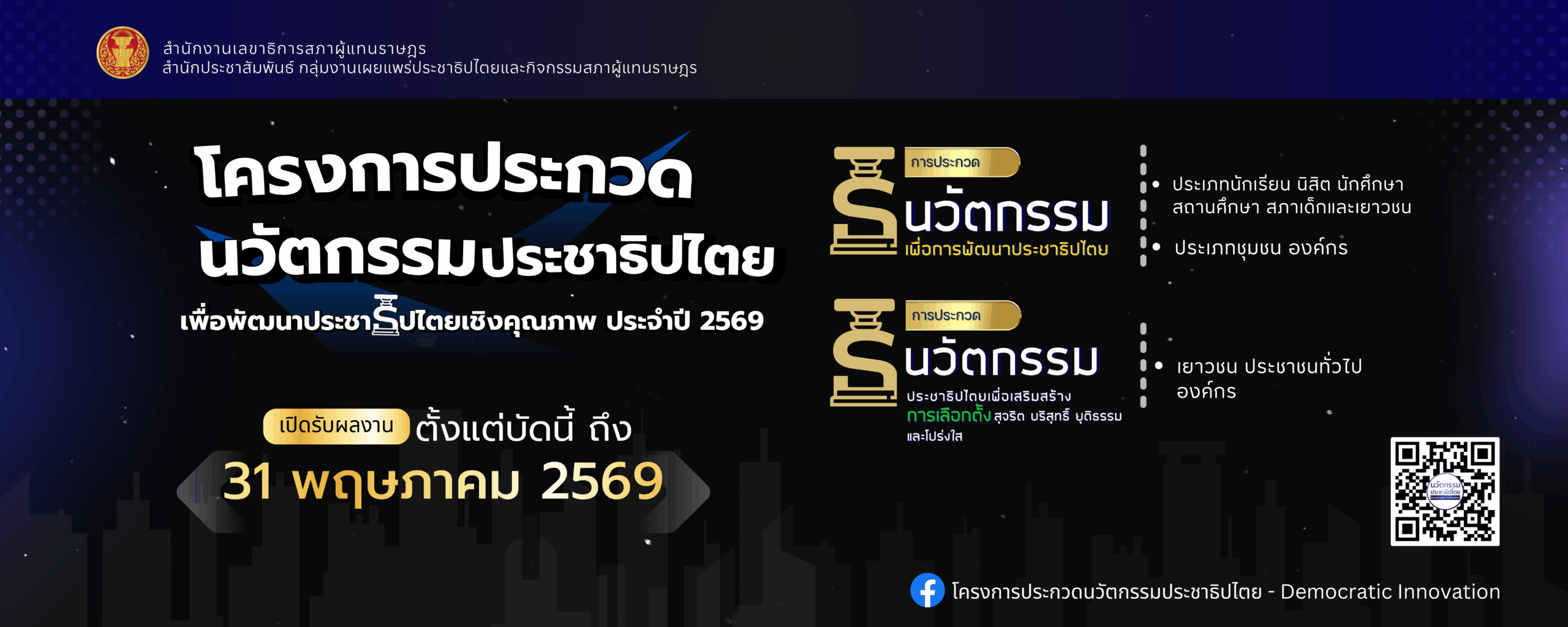 โครงการประกวดนวัตกรรมประชาธิปไตย เพื่อพัฒนาประชาธิปไตยเชิงคุณภาพ ประจำปี 2569 เปิดรับผลงานตั้งแต่บัดนี้ ถึงวันที่ 31 พฤษภาคม 2569