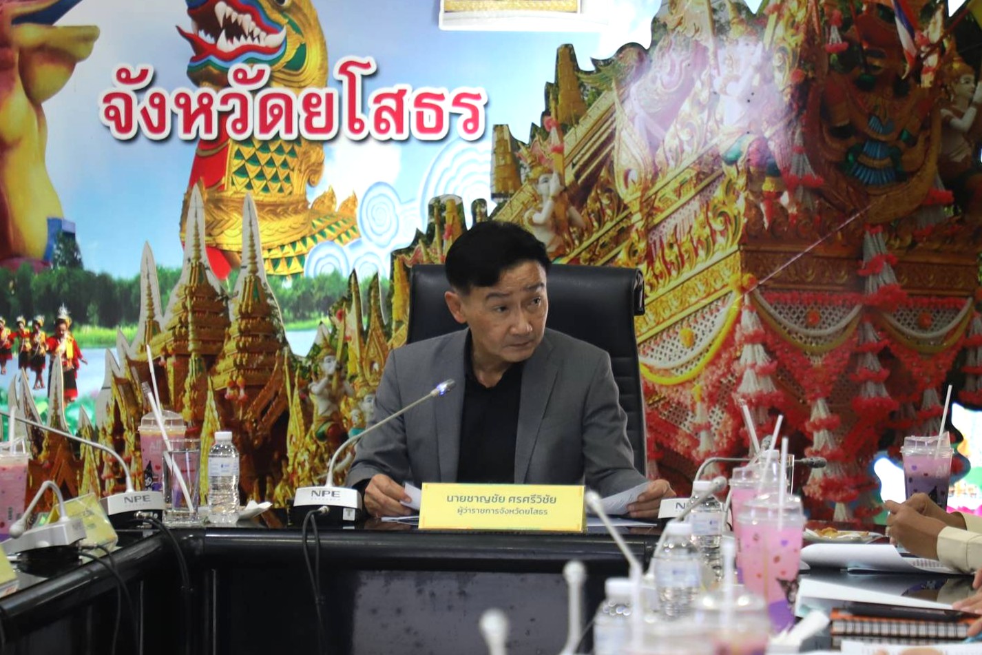 วันที่ 4 กุมภาพันธ์ 2569 ที่ห้องประชุมสุนทรราชวงศา ชั้น 2 ศาลากลางจังหวัดยโสธร นายชาญชัย ศรศรีวิชัย ผู้ว่าราชการจังหวัดยโสธร พร้อมด้วยนางนันทพร ศรศรีวิชัย ประธานแม่บ้านมหาดไทย จังหวัดยโสธร ร่วมประชุมกับคณะกรรมการพิจารณากลั่นกรองคัดเลือกผู้สมควรได้รับทุนการศึกษาของสมาคมแม่บ้านมหาดไทย ประจำปี 2569 เพื่อร่วมกันพิจารณาจัดสรรทุนการศึกษาให้แก่บุตรของข้าราชการ ลูกจ้างประจำ พนักงานราชการ และสมาชิกกองอาสารักษาดินแดน (อส.) ในสังกัดกระทรวงมหาดไทย ที่มีความประพฤติดี ตั้งใจศึกษาเล่าเรียน แต่ขาดแคลนทุนทรัพย์