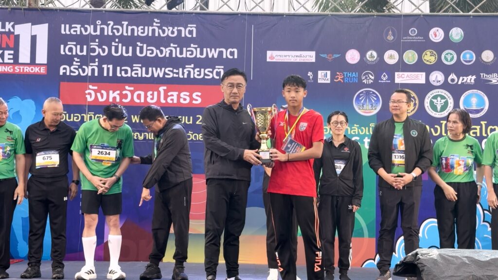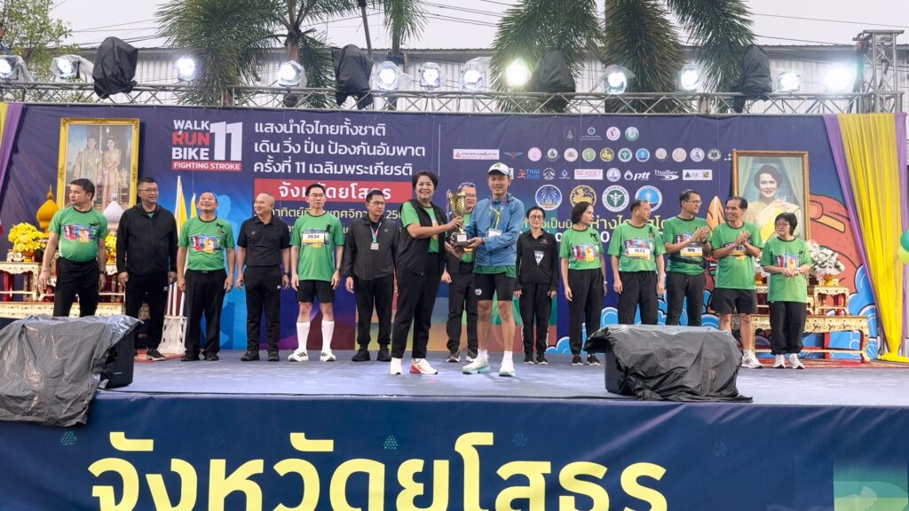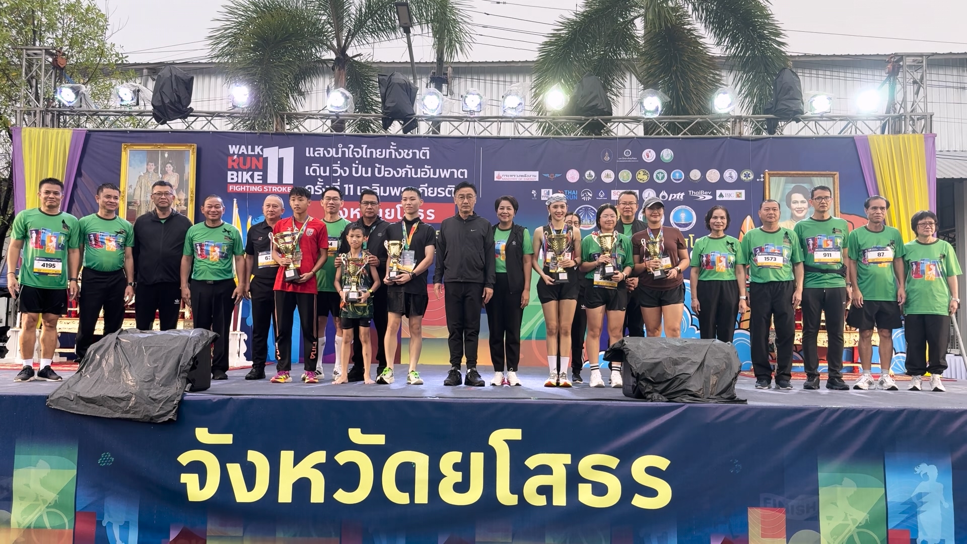สำหรับกิจกรรมในปีนี้จัดขึ้นภายใต้แนวคิด ออกกำลังเป็นนิสัย ห่างไกลสโตรค เพื่อกระตุ้นเตือนถึงอันตรายของโรคหลอดเลือดสมอง (Stroke) ซึ่งเป็นสาเหตุการเสียชีวิตอันดับหนึ่งของประเทศไทย และมีแนวโน้มเพิ่มสูงขึ้นอย่างน่ากังวลในจังหวัดยโสธร โดยข้อมูลล่าสุดในปี 2568 พบว่ามีผู้ป่วยสะสมในจังหวัดสูงถึง 6,715 รายนจำนวนนี้เป็นผู้ป่วยรายใหม่ 1,837 รายและมีผู้เสียชีวิตแล้ว 80 ราย ซึ่งตัวเลขดังกล่าวสะท้อนให้เห็นว่าโรคหลอดเลือดสมองไม่ใช่เรื่องไกลตัวอีกต่อไป แต่เป็นภัยเงียบที่ต้องรับมืออย่างจริงจัง ขณะที่โครงการแสงนำใจ ไทยทั้งชาติ โดยศูนย์โรคหลอดเลือดสมองศิริราช ได้ชี้ว่า 90% ของโรคนี้สามารถป้องกันได้เพียงแค่ปรับเปลี่ยนพฤติกรรม และสิ่งที่น่าดีใจและภาคภูมิใจของชาวจังหวัดยโสธรคือมีผู้สมัครเข้าร่วมกิจกรรมนี้มากถึง 6,113 คน แสดงให้เห็นถึงความตระหนักรู้ในเรื่องของสุขภาพ และหันมาใส่ใจในการออกกำลังกายอย่างสม่ำเสมอ เป็นการส่งสัญญาณว่าทุกคนพร้อมที่จะลุกขึ้นมาสู้กับโรคหลอดเลือดสมอง ด้วยการปรับเปลี่ยนพฤติกรรมทำให้ตัวเองมีสุขภาพร่างกายที่แข็งแรงและห่างไกลจากโรคภัย