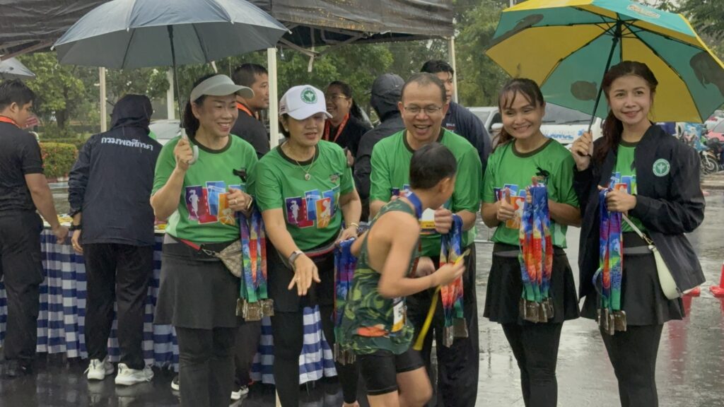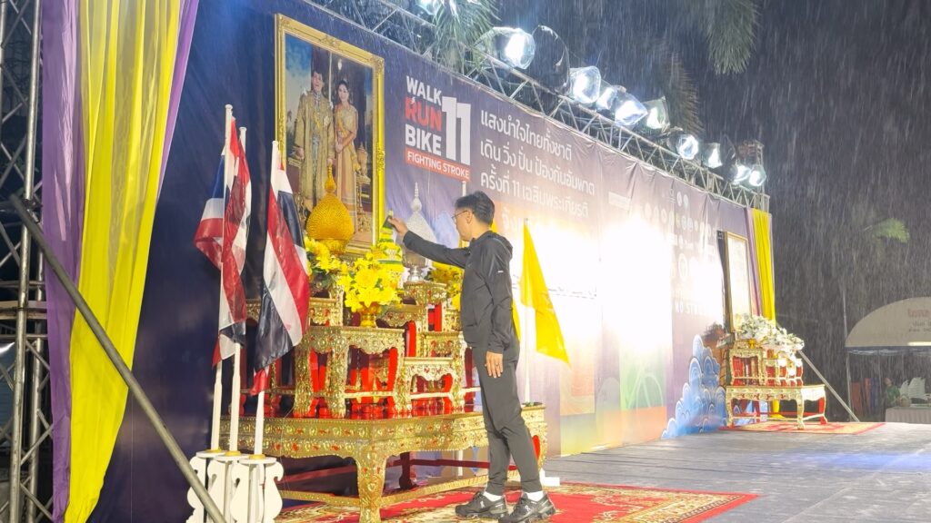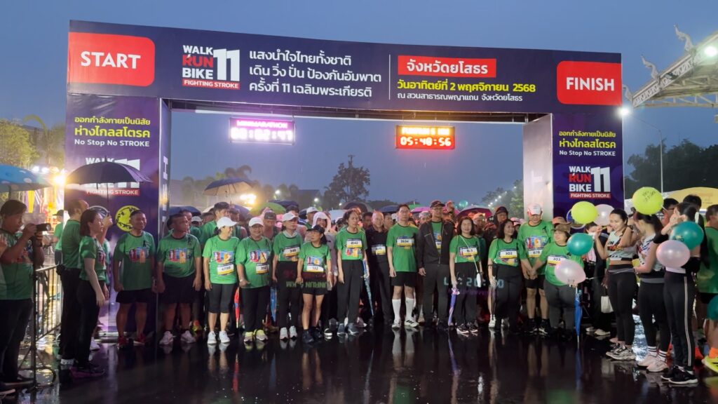 วันที่ 2 พฤศจิกายน 2568 ที่บริเวณสวนสาธารณะพญาแถน อำเภอเมืองยโสธร จังหวัดยโสธร แม้สายฝนจะโปรยปรายลงมาไม่ขาดสาย แต่ก็ไม่เป็นอุปสรรคต่อพลังความสามัคคีของชาวยโสธร ที่ได้พร้อมใจกันมาร่วมกิจกรรม “เดิน วิ่ง ปั่น ป้องกันอัมพาต ครั้งที่ 11 เฉลิมพระเกียรติ” ที่สะท้อนถึงความมุ่งมั่นในการดูแลสุขภาพและน้อมรำลึกในพระมหากรุณาธิคุณอย่างหาที่สุดมิได้ โดยบรรยากาศภายในงานเต็มไปด้วยความตั้งใจจริงของแต่ละคนที่ไม่ย่อท้อ แม้จะต้องเลื่อนกำหนดการปล่อยตัวออกไปประมาณ 30 นาทีเนื่องจากฝนที่ตกหนัก แต่ทุกคนก็ยังรอร่วมทำกิจกรรมกันอย่างเนื่องแน่น