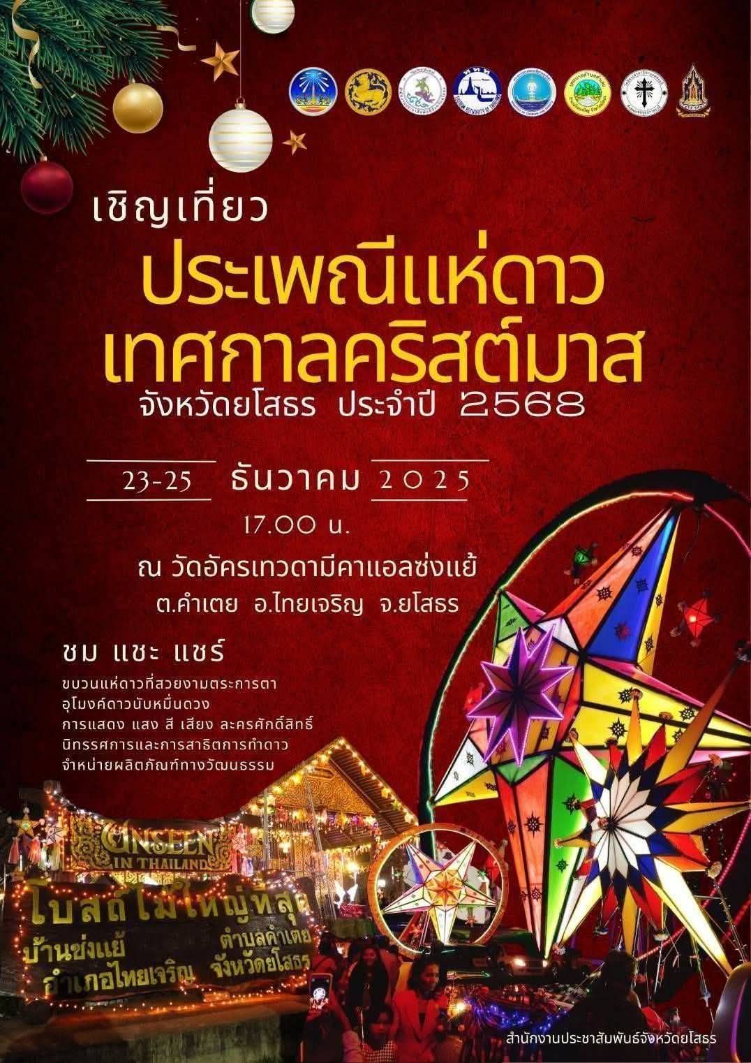 เที่ยวงานประเพณีแห่ดาวเทศกาลคริสต์มาส จังหวัดยโสธร ประจำปี 2568 ระหว่างวันที่ 23-25 ธันวาคม 2568 ณ วัดอัครเทวดามีคาแอลซ่งแย้ อ.ไทยเจริญ