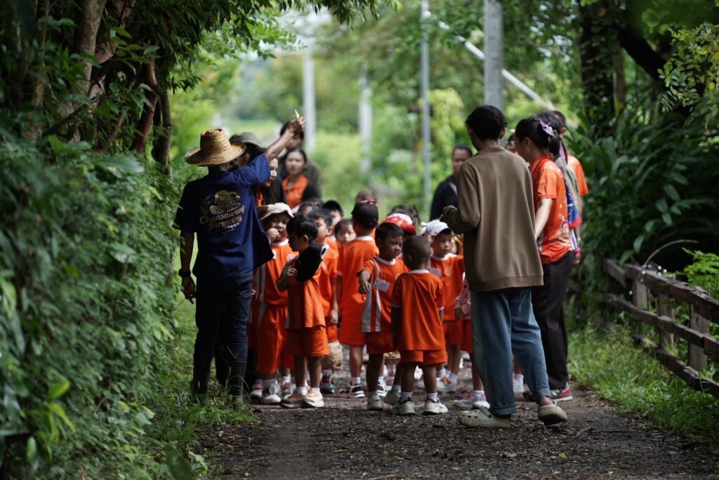 วันที่ 23 กันยายน 2568 บรรยากาศที่ “นาจันทร์สว่างฟาร์มสเตย์” อำเภอเมืองยโสธร จังหวัดยโสธร แหล่งเรียนรู้เกษตรอินทรีย์มีชีวิตต้นแบบของจังหวัดยโสธร อบอวลไปด้วยรอยยิ้มและเสียงหัวเราะ เมื่อ นายชาญชัย ศรศรีวิชัย ผู้ว่าราชการจังหวัดยโสธร ได้มาร่วมกิจกรรม “เรียนรู้วิถีเกษตรอินทรีย์” กับน้องๆ เกษตรกรรุ่นจิ๋ว ระดับชั้นอนุบาล 1–3 จากโรงเรียนสันติธรรมวิทยาคม สร้างความประทับใจและความอบอุ่นให้กับคณะครูและทีมงานนาจันทร์สว่างฟาร์มสเตย์ เป็นอย่างยิ่ง