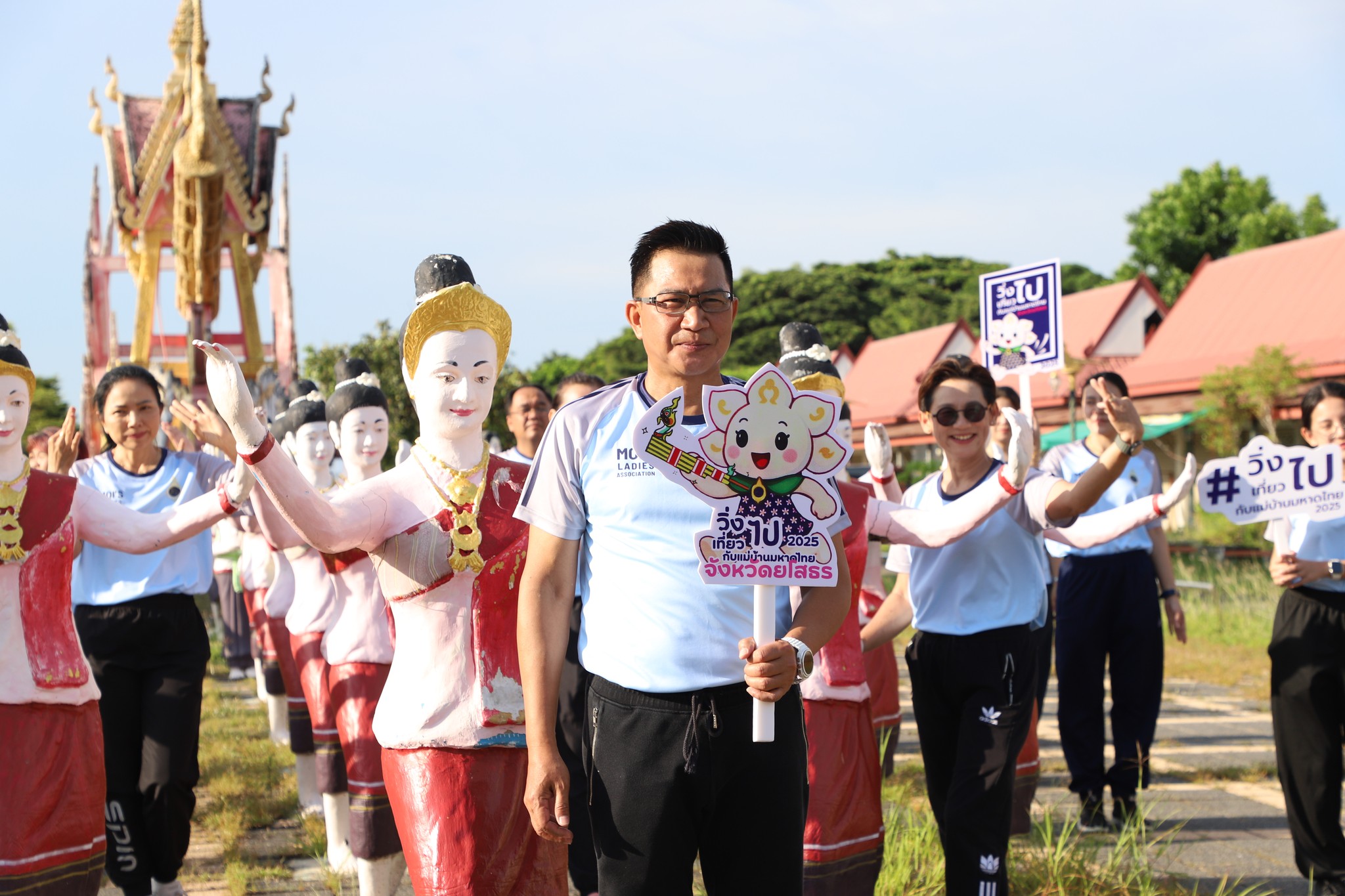 วันพุธที่ 8 ตุลาคม 2568 เวลา 07.00 น. นายชาญชัย ศรศรีวิชัย ผู้ว่าราชการจังหวัดยโสธร มอบหมายให้ นายขรรค์ไชย ทันธิมา รองผู้ว่าราชการจังหวัดยโสธร พร้อมด้วย นางนันทพร ศรศรีวิชัย ประธานแม่บ้านมหาดไทยจังหวัดยโสธร นางสาวภรณ์ชนก ตั้งศิริกุล รองประธานแม่บ้านมหาดไทยจังหวัดยโสธร นางปราณี บูรณะ รองประธานแม่บ้านมหาดไทยจังหวัดยโสธร ได้นำทีมหัวหน้าส่วนราชการ หัวหน้าหน่วยงานรัฐวิสาหกิจ สมาชิกชมรมแม่บ้านมหาดไทยจังหวัดยโสธร สมาชิกเหล่ากาชาดจังหวัดยโสธร ข้าราชการและเจ้าหน้าที่ และพี่น้องประชาชนชาวยโสธร ที่สมัครเข้าร่วมโครงการ ฯ ร่วมกิจกรรมตามโครงการ “วิ่งไป เที่ยวไป กับแม่บ้านมหาดไทย“ ประจำปี พ.ศ. 2568 เพื่อส่งเสริมให้ประชาชนมีสุขภาพที่ดีผ่านการออกกำลังกายด้วยกิจกรรมวิ่งเพื่อสุขภาพ ตลอดจนเพื่อเป็นการประชาสัมพันธ์แหล่งท่องเที่ยวในจังหวัดยโสธรให้เป็นที่รู้จักผ่านสื่อโซเชียลมีเดีย และส่งเสริมการท่องเที่ยวในพื้นที่จังหวัดยโสธร ณ วิมานพญาแถน ตำบลในเมือง อำเภอเมืองยโสธร จังหวัดยโสธร ประกอบด้วย